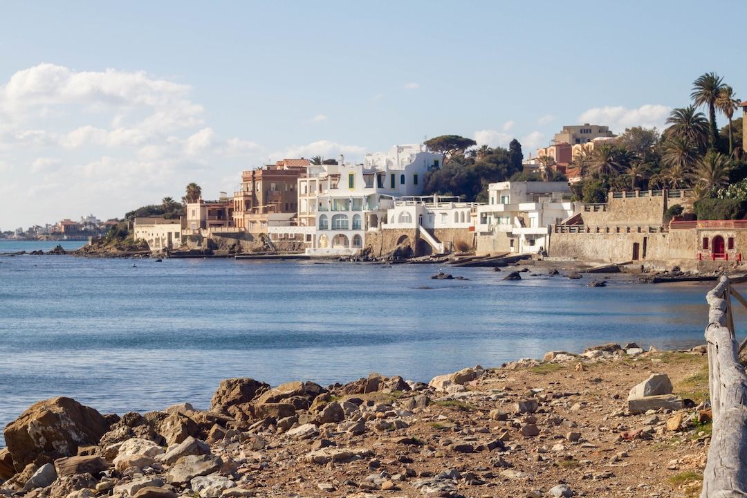 Plus au nord de Rome se trouvent les plages de Santa Marinella. C’est une ville typique de la côte italienne avec à la fois des petites ruelles calmes mais aussi une promenade le long de la côte ornée de palmiers.